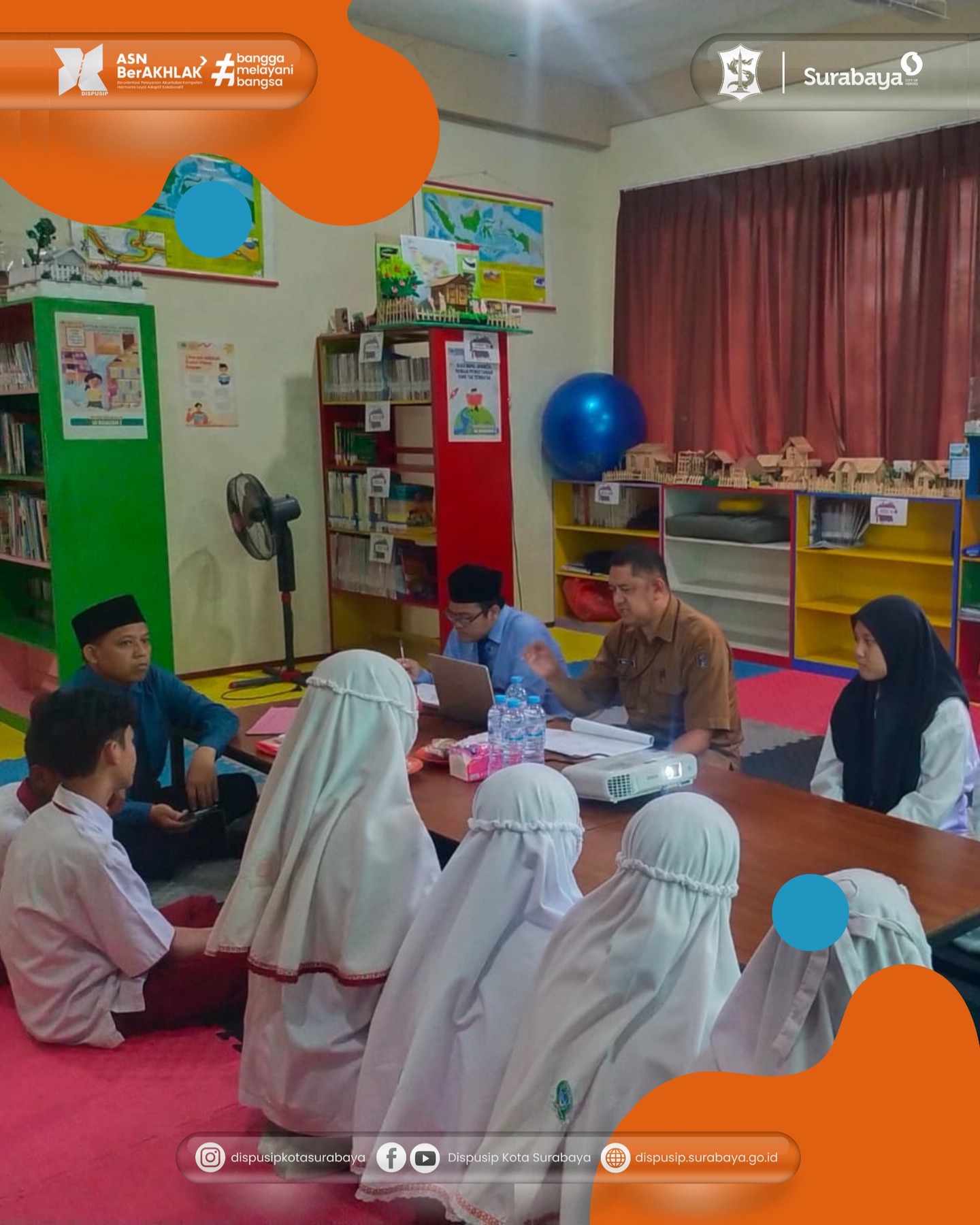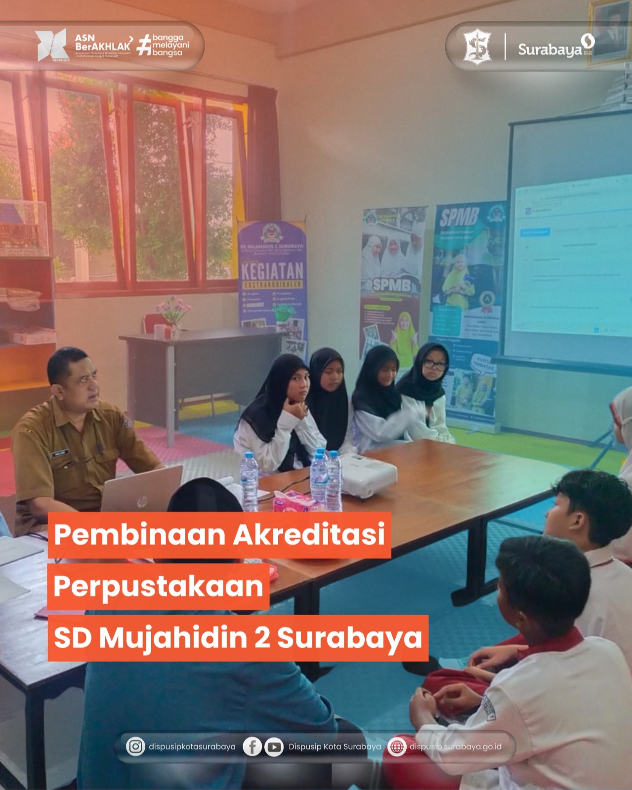 Surabaya, Senin (19/1/2026) — Dinas Perpustakaan dan Kearsipan (Dispusip) Kota Surabaya melaksanakan pembinaan dan pendampingan akreditasi perpustakaan di SD Mujahidin 2 Surabaya.