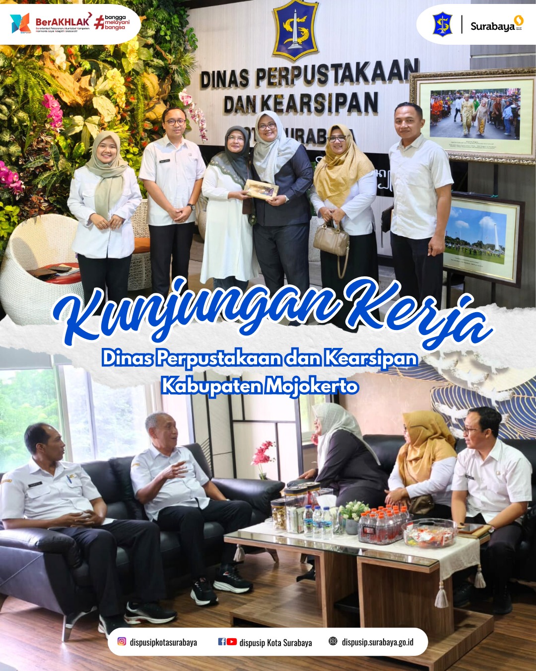 Dinas Perpustakaan dan Kearsipan (Dispusip) Kota Surabaya Menerima kunjungan kerja sekaligus studi banding dari Dinas Perpustakaan dan Kearsipan Kabupaten Mojokerto